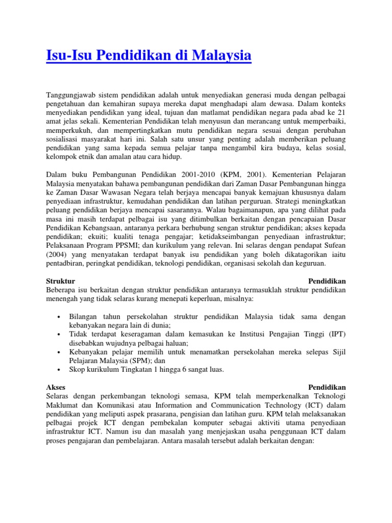 Isu Isu Pendidikan Di Malaysia Pdf
